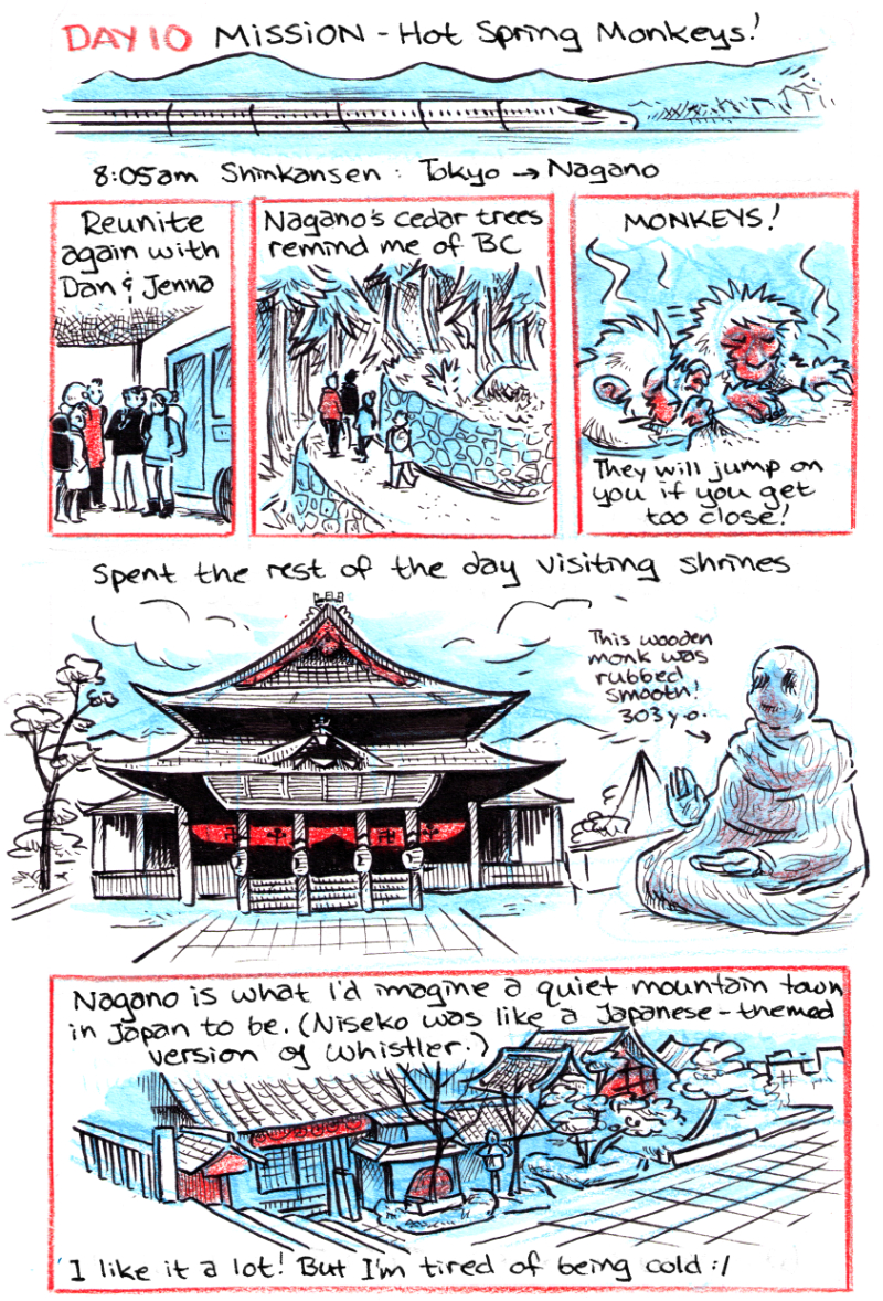 Travelogue completed by Jam in 2016 based on a two-week trip to Japan they took with friends. Ink, Marker and Pencil-Crayon.