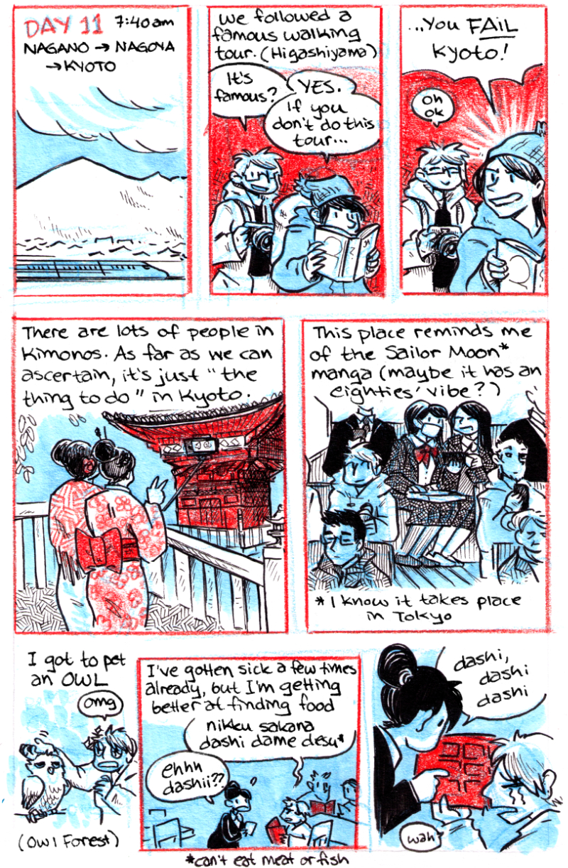 Travelogue completed by Jam in 2016 based on a two-week trip to Japan they took with friends. Ink, Marker and Pencil-Crayon.