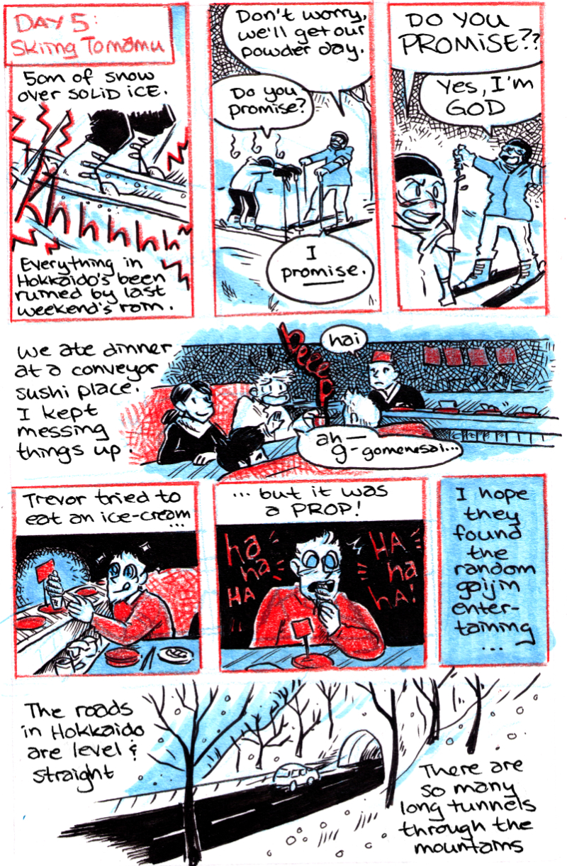 Travelogue completed by Jam in 2016 based on a two-week trip to Japan they took with friends. Ink, Marker and Pencil-Crayon.