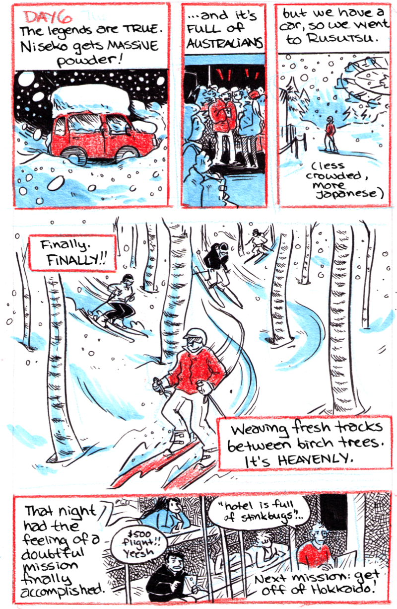 Travelogue completed by Jam in 2016 based on a two-week trip to Japan they took with friends. Ink, Marker and Pencil-Crayon.
